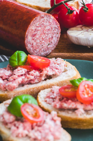 E250 (Peklosól) nadaje wędlinom lekko słony smak oraz aromatyczny zapach. Bez procesu peklowania, wędzonki byłyby w środku szare, a nie różowe. Bez peklosoli może wytworzyć się niezwykle niebezpieczny jad kiełbasiany, dlatego jest niezbędna!